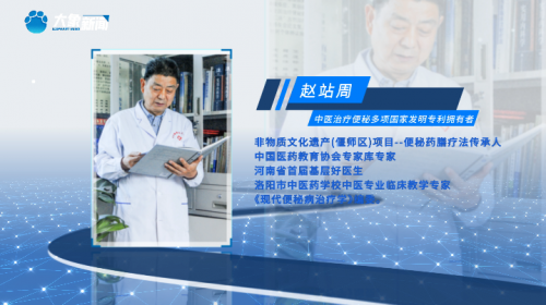 赵站周,中医治疗便秘多项国家发明专利拥有者,非物质文化遗产(偃师区)项目--便秘药膳疗法传承人,中国医药教育协会专家库专家,河南省首届基层好医生,洛阳市中医药学校中医专业临床教学专家。《现代便秘病治疗学》编委。